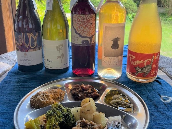 この日は、日本ワイン店じゃんから、白ワイン1本、オレンジワイン2本、赤ワイン2本の日本ワインをご提供しました。ワインのご説明をさせていただき、作ったスパイスつまみと共に皆でワインを楽しみます。