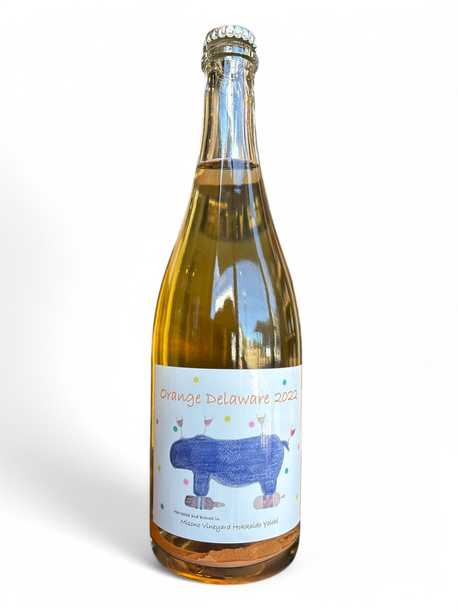 自家農園の樹齢30年のデラウエアをブドウに付着する野生の酵母で発酵させたオレンジワイン(果皮と種を果汁と一緒に発酵)です。酸化防止剤(亜硫酸)無添加。瓶内二次発酵により発生する炭酸をそのままに無濾過で瓶詰。