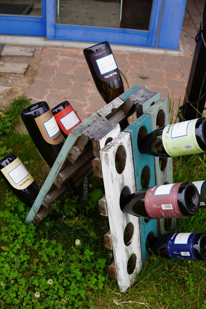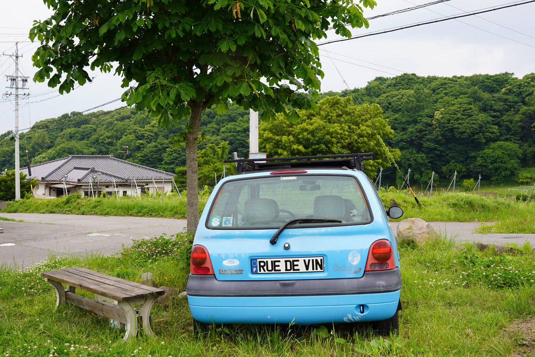 少し丘を登った場所にある「Rue de Vin」は、洗練されたエレガントなデザインの建物で、入口には濃い空色のルノー車が停まっており、訪れる人々を歓迎してくれます。