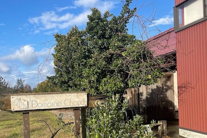 その入り口近くに位置するのが、小林さんご夫婦とスタッフ一人で営む小さなワイナリー、ドメーヌショオです。ワイナリー名の「ショオ」は、小林の「小(ショウ)」に由来。目の前に広がる畑と、風を防ぐ防砂林が織りなす風景のなかで、この地ならではのワイン造りが行われています。