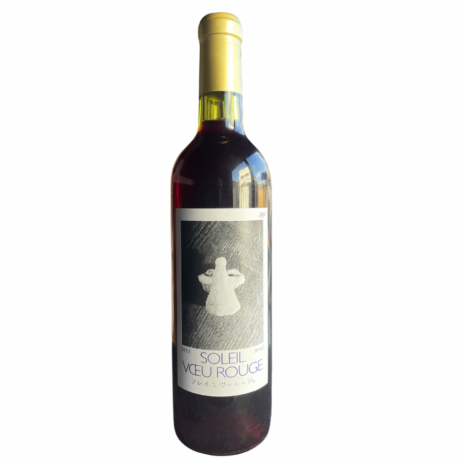 甲斐ノワール(カベルネ・ソーヴィニョンとブラッククイーン種の交配品種)を中心に4種類のブドウを使った赤ワイン。ヴールージュという商品名の「ヴー」は、仏語で「願い」。多くの人に、幸せがもたらされるように、願いが込められています。