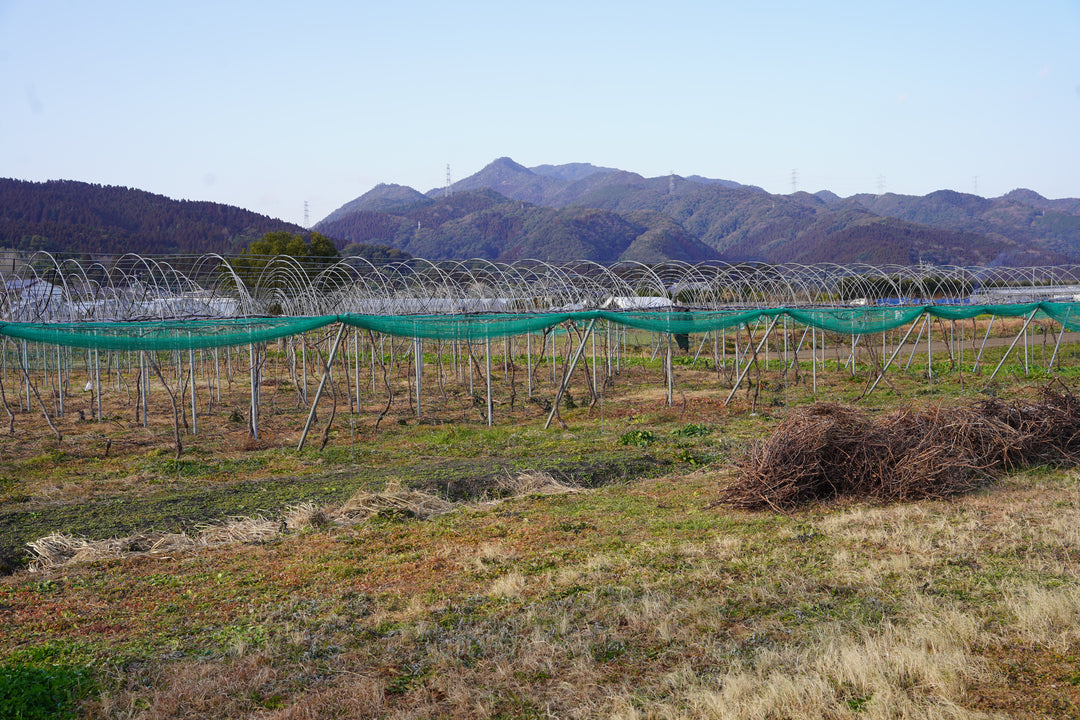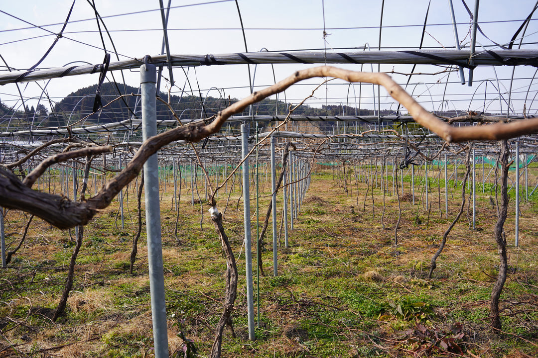香月ワインズでは、欧州系品種だけでなく、日本の風土に適した食用品種の栽培にも取り組んでいます。関東で生まれ、綾町に普及したブラックオリンピアもその一例ですが、それに限らず、異なる品種を試しながら、綾町の気候と土壌に適したブドウ栽培を続けています。